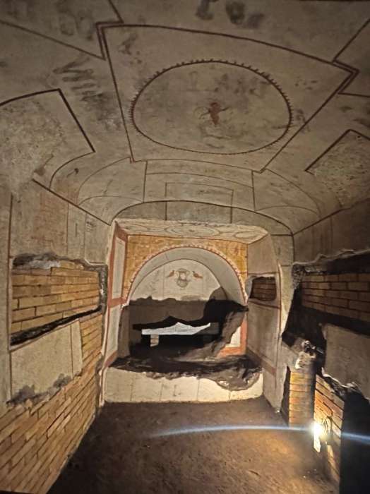 Your tour guide will lead you through a labyrinth of narrow passageways lined with burial niches carved into the soft tufa rock. As you walk through these ancient corridors, you will encounter ornate frescoes, inscriptions, and symbols that offer insights into the religious beliefs and customs of the early Christian community.